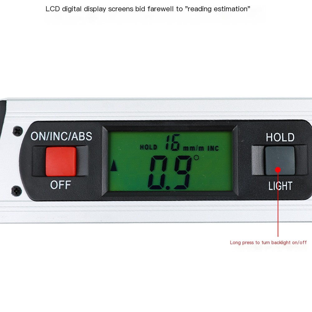 Unlock precision in your projects with our 400mm 225-degree digital angle gauge and electronic level. This tool is designed for professionals and DIY enthusiasts alike, providing an accurate measuring range of 0 to 225 degrees. Whether you are working on carpentry, masonry, or other projects that require precise angles, this tool has you covered.