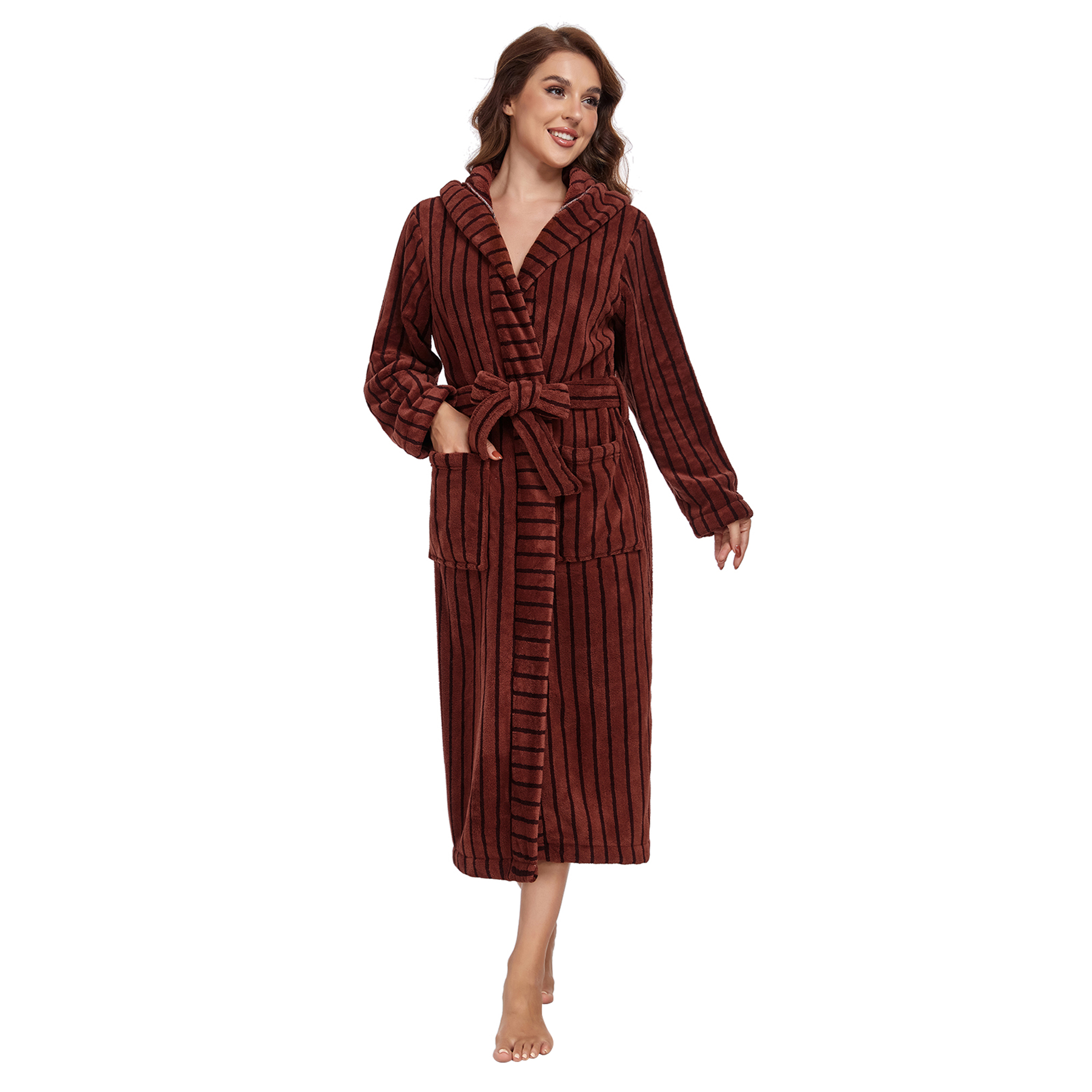 Generous Cut with Functional Details Oversized fit (fits up to US size XL) with roomy kangaroo pockets for storing phones/essentials, plus a deep hood to shield from drafts. The ankle-skimming length provides full coverage while maintaining elegance.
